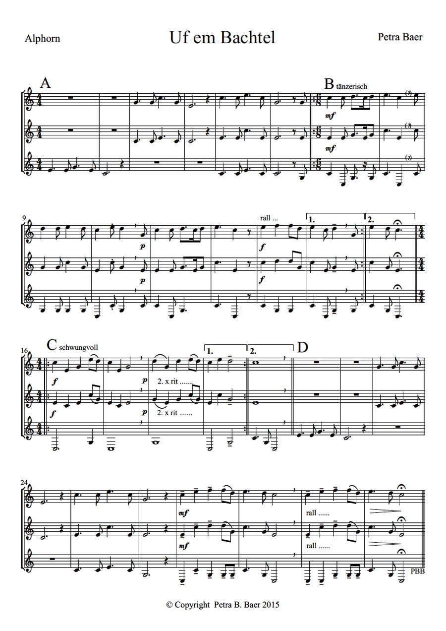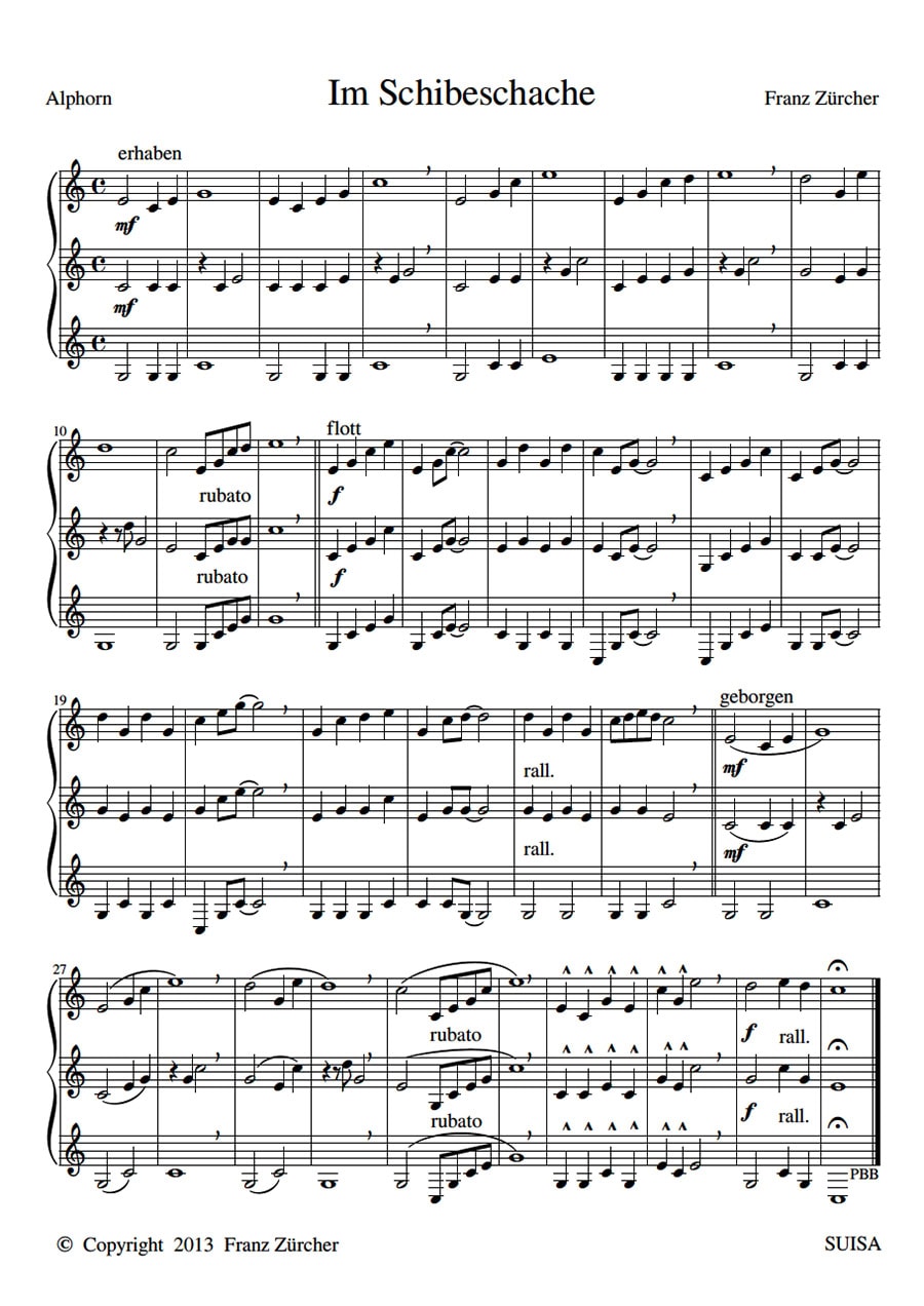 Eigenkompositionen aus unserem Repertoire, die frei heruntergeladen und für musikalische Zwecke genutzt werden können. Bei öffentlichen Aufführungen sind diese aufgrund des Urheberrechts bei der SUISA anzumelden.